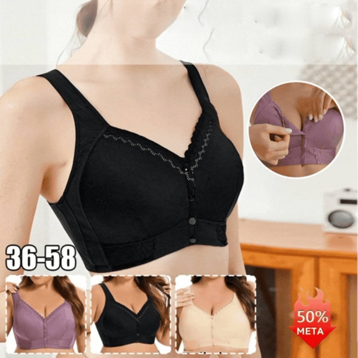 (3 piezas)💕🎁【45 kg-155 kg】Sujetador transpirable de gran tamaño hecho de algodón suave, cierre de botón frontal